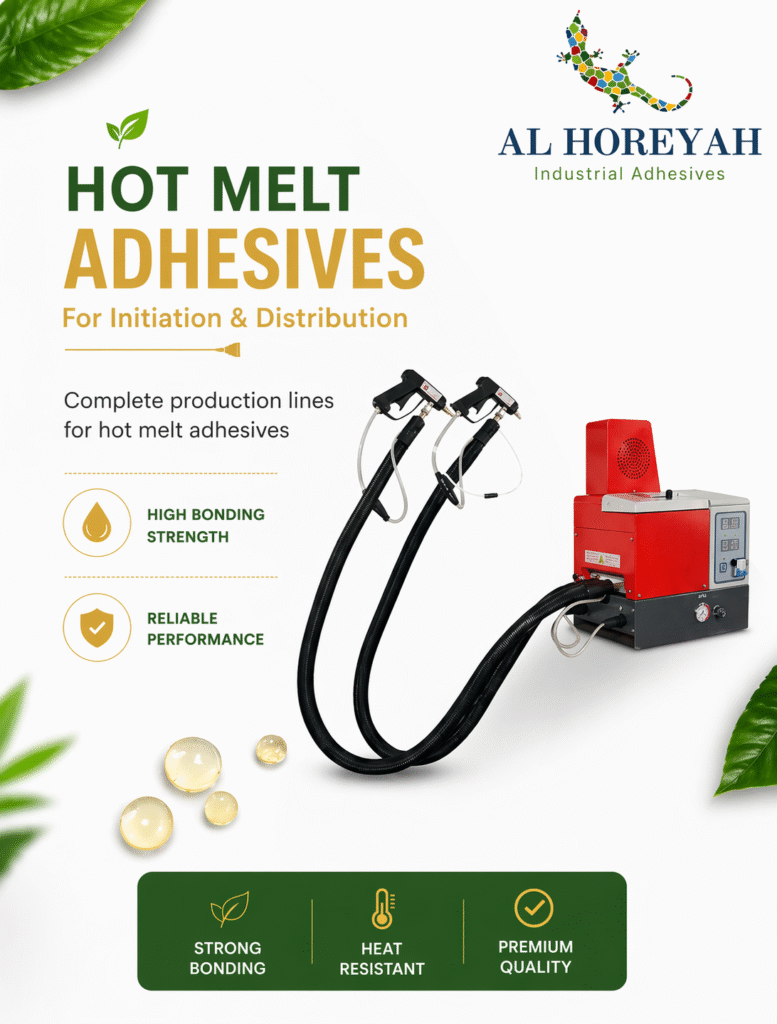 At Al Hurriya, we offer an integrated system of high-performance thermal adhesives, supported by modern machines that ensure efficiency and accuracy in various industrial sectors, from the manufacture of shoes and furniture to packaging and medical applications.